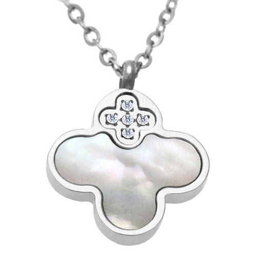 STAINLESS STEEL NECKLACE WITH FLOWER PENDANT WITH SHELL & CZ