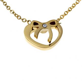 STAINLESS STEEL NECKLACE IN HEART SHAPE WITH RIBBON WITH CZ ALL IN IPG COLOR