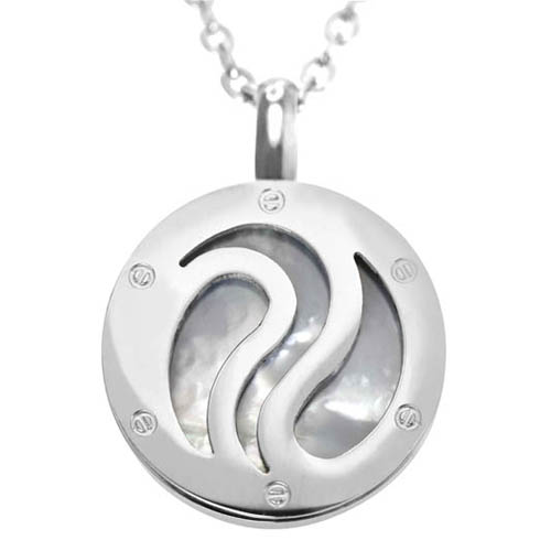 STAINLESS STEEL NECKLACE WITH CIRCLE PENDANT WITH SCREW PATTERN WITH SHELL IN S/S COLOR (Set with SE1389)