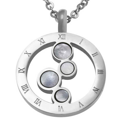 STAINLESS STEEL NECKLACE WITH CIRCLE PENDANT WITH ROMAN NUMBERS WITH 2 SHELL CIRCLE IN S/S COLOR (set with SE1390)