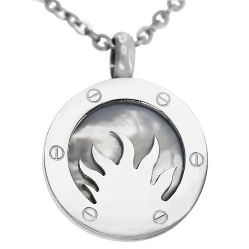 STAINLESS STEEL NECKLACE WITH CIRCLE PENDANT IN CIRCLE SHAPE WITH FIRE & SCREW PATTERN WITH SHELL IN S/S COLOR (Set with SE1393)
