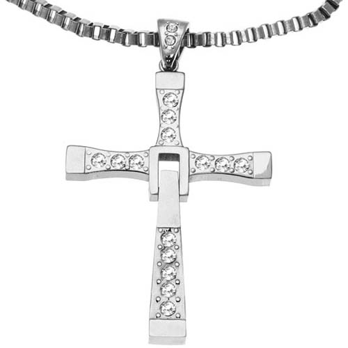 STAINLESS STEEL NECKLACE ALL IN STAINLESS STEEL COLOR WITH CROSS PENDANT WITH CZ