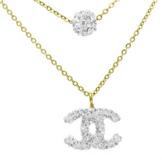 STAINLESS STEEL NECKLACE ALL IN IPG COLOR WITH WHITE CHANNEL PENDANT WITH CZ WITH CZ SPHERE