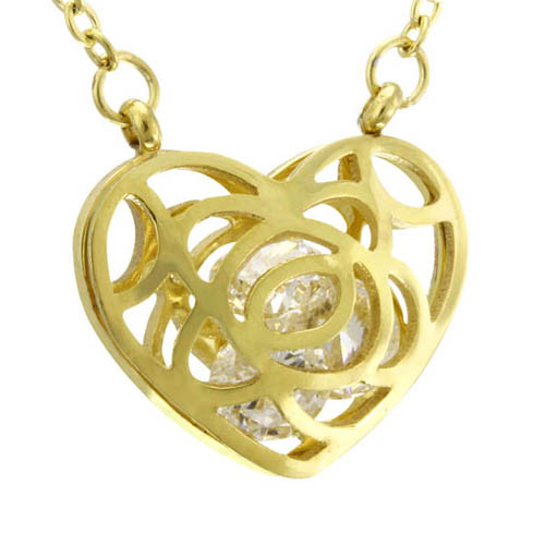 STAINLESS STEEL NECKLACE ALL IN IPG COLOR WITH ROSE CUTOUT HEART CHARMS WITH CZ