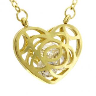 NECKLACE: L=45CM TH=1.5MM ROSE CUTOUT HEART CHARMS L=13.5MM W=17MM TH=5.5MM