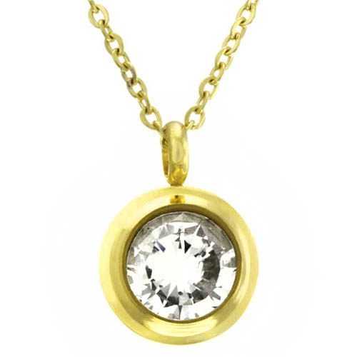 STAINLESS STEEL NECKLACE ALL IN IPG COLOR WITH CIRCLE PENDANT WITH BIG CZ (Set with SE1466)