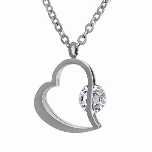 STAINLESS STEEL NECKLACE ALL IN S/S COLOR WITH HOLLOW HEART CHARMS WITH CZ