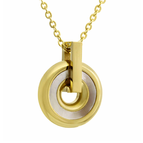 STAINLESS STEEL NECKLACE CIRCLE (WHEEL) SHAPE IN IPG COLOR WITH SHELL ALL IPG