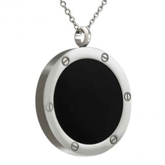 STAINLESS STEEL NECKLACE WITH CIRCLE PENDANT WITH ROMAN NUMBERS AND BLACK ENAMEL IN S/S COLOR