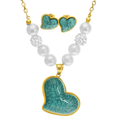 STAINLESS STEEL NECKLACE A PENDANT TURQUOISE STONE IN HEART SHAPE IN IPG COLOR WITH PZ & PEARL.