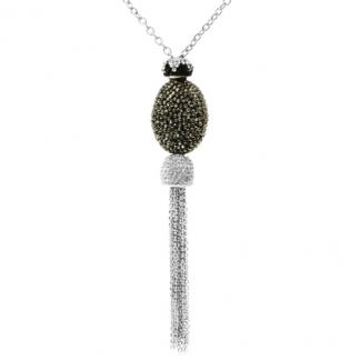STAINLESS STEEL NECKLACE WITH BLACK & WHITE CRYSTAL PENDANT WITH THIN CHAIN IN CASCADE ALL S/S COLOR