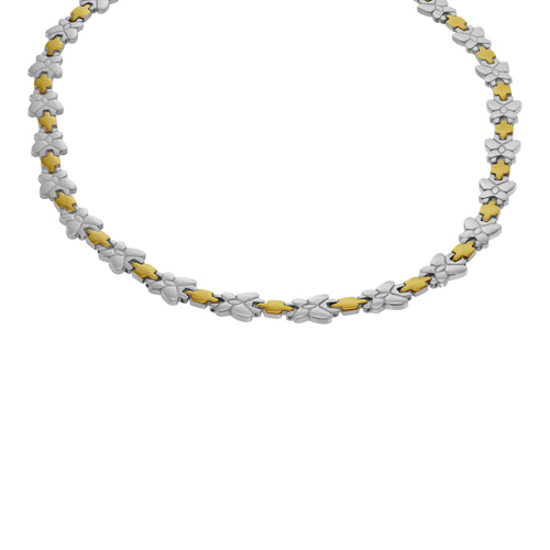 STAINLESS STEEL NECKLACE WITH BUTTERFLIES IN TWO TONES S/S AND IPG COLOR.