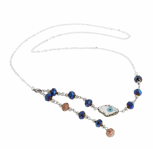 STAINLESS STEEL CHAIN WITH DARK BLUE CRYSTAL AND ONE SHELL WITH THE EYE