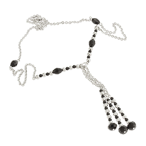 STAINLESS STEEL CHAIN WITH BLACK CRYSTAL & STEEL BEADS
