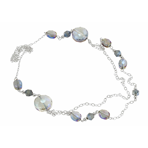 BLUE CRYSTAL: 16MM & 9X12MM CHAIN L=70CM