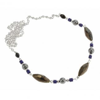 STAINLESS STEEL CHAIN WITH BLACK CRYSTAL& DARK GREY COLOR CRYSTAL/ LAPIS STONE & HEMITATE