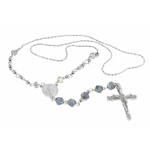 STAINLESS STEEL ROSARY CHAIN WITH BLUE CRYSTAL STONE& STEEL BALL