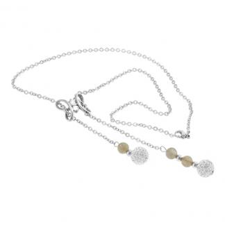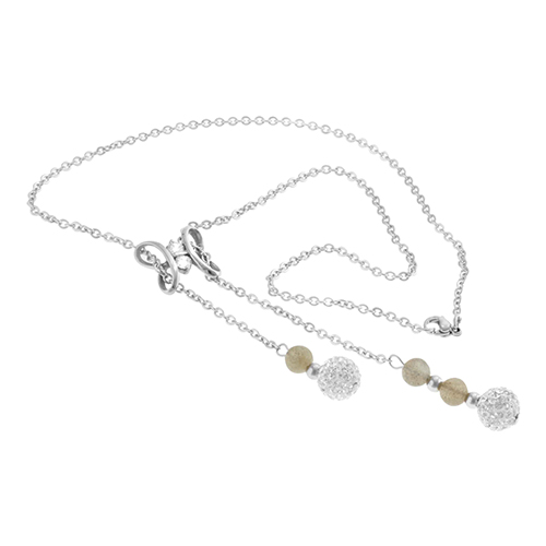 STAINLESS STEEL NECKLACE WITH FLASH STONE AND CZ BALL