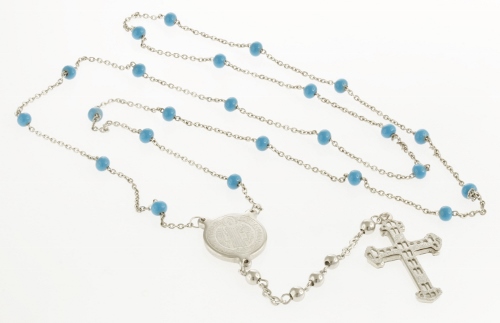 STAINLESS STEEL ROSSARY CHAIN WITH BLUE BEADS