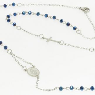 STAINLESS STEEL ROSARY CHAIN WITH BLUE CRYSTAL