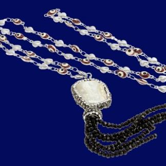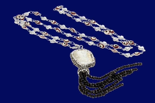STAINLESS STEEL CHAIN WITH EVEIL EYES & WITH PEARL PENDENT & CRYSTAL TASSEL