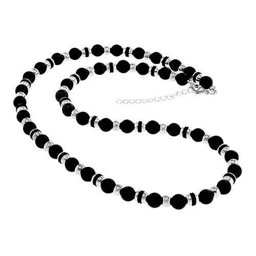 STAINLESS STEEL CHIAN WITH STEEL BALLS AND BLACK ONYX