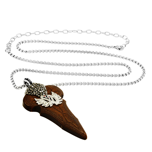 PENDANT WITH ONE PAIR OF COPPER SWANS IN THE CENTER