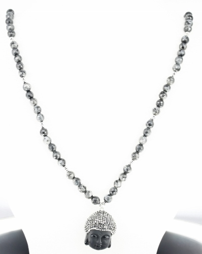 WITH ONE BUDDHA PENDANT IN BLACK ONYX AND AROUND WITH BLACK & WHITE CZ
