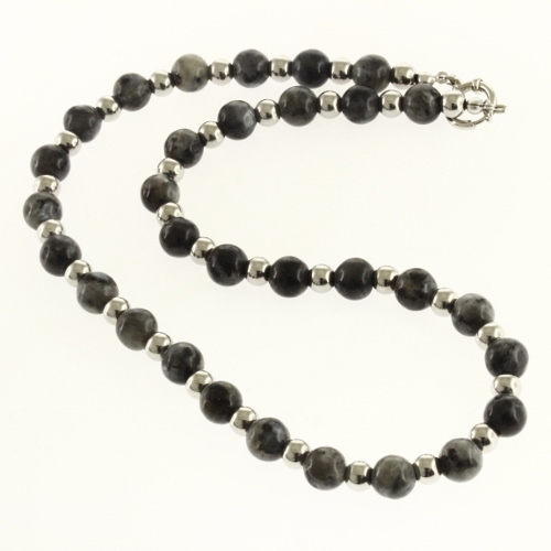 STAINLESS STEEL NECKLACE WITH THE LABRADORITE STONE AND STEEL BALLS