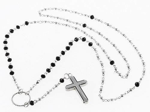 STAINLESS STEEL ROSARY CHAIN WITH BLACK CRYSTAL