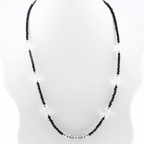 STAINLESS STEEL NECKLACE WITH WHITE AND BLACK CRYSTAL