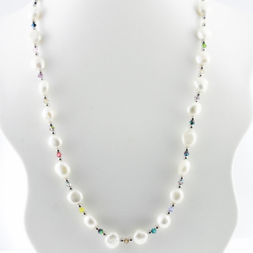STAINLESS STEEL NECKLACE WITH RIVER PEARL AND CRYSTAL IN COLORS AND STEEL BALLS