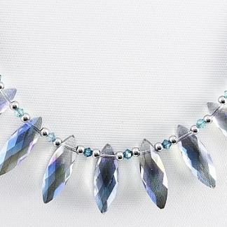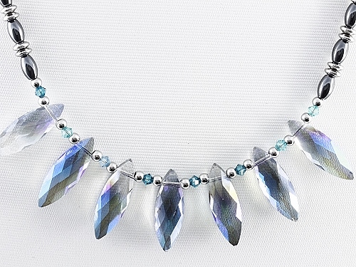 STAINLESS STEEL NECKLACE WITH HEMITATE AND BLUE CRYSTALS AND STEEL BEADS
