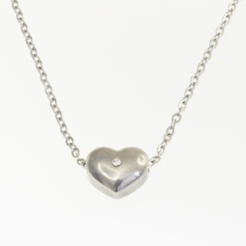 STAINLESS STEEL NECKLACE WITH COPPER PENDANT IN TRIANGLE SHAPE WITH CZ