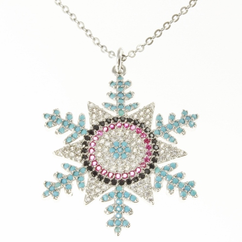 STAINLESS STEEL NECKLACE WITH COPPER PENDANT IN FLAKE SHAPE WITH CZ