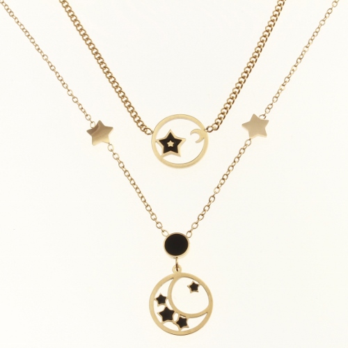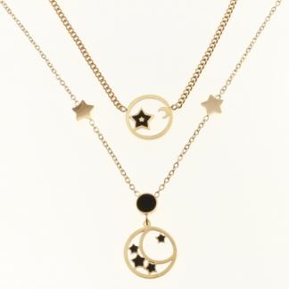 STAINLESS STEEL DOUBLE CHAIN WITH MOON AND STARS WITH BLACK IPB COLOR