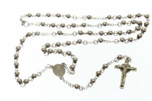 STAINLESS STEEL ROSARY NECLKACE WITH JESUS CROSS ALL IN S/S COLOR