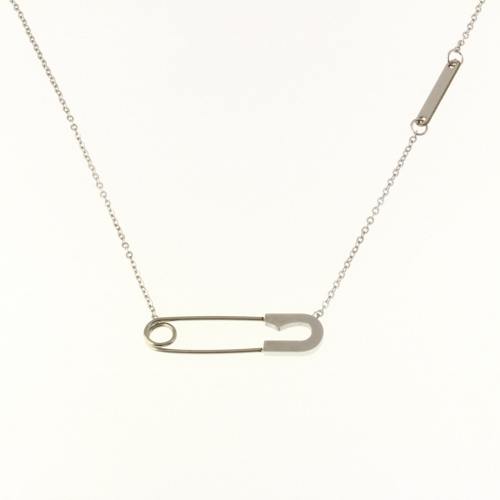 STAINLESS STEEL NECLKACE WITH PIN PENDANT ALL IN S/S COLOR