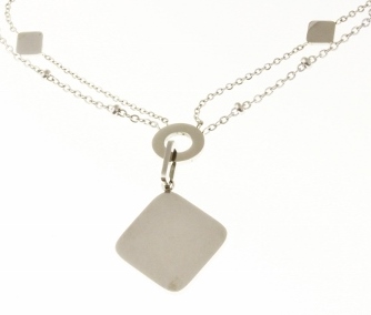 STAINLESS STEEL DOUBLE CHAIN WITH STILL BEADS AND ROMBO PENDANT ALL IN S/S COLOR