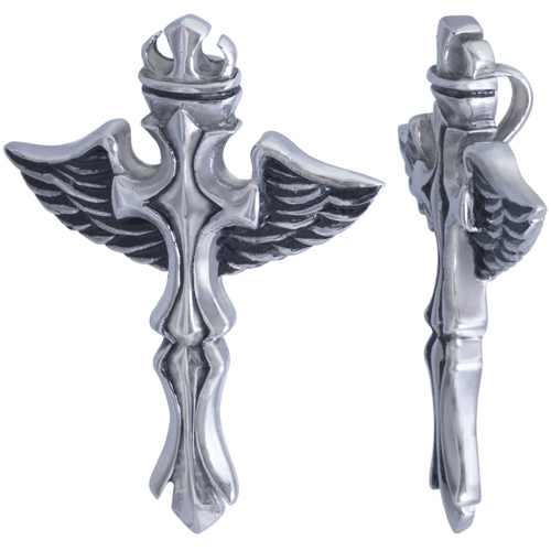 STAINLESS STEEL PENDANT With Black ENAMEL In Cross Shape with Wing