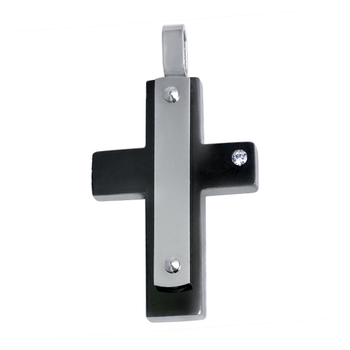 STAINLESS STEEL PENDANT With CZ In IPB two toneIn Cross Shape