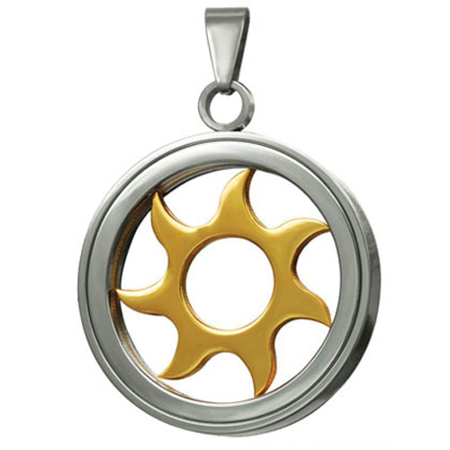 STAINLESS STEEL PENDANT Circle shape with sun In IPG two tone
