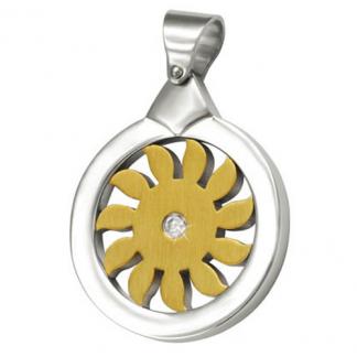STAINLESS STEEL PENDANT In circle shape with sun In IPG 2 tones with 1cz
