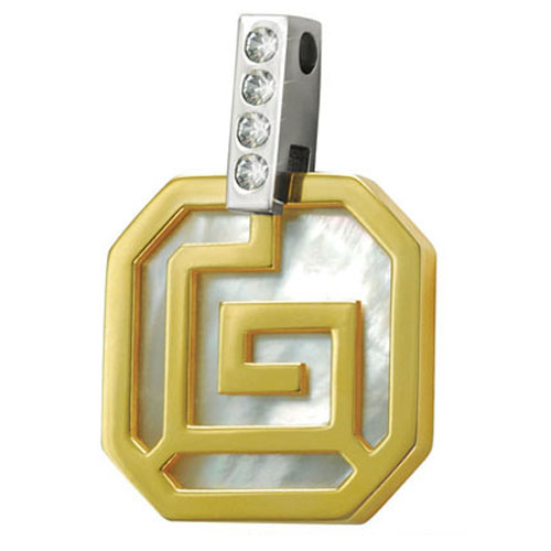STAINLESS STEEL PENDANT In IPG 2 tones In Octagon Shape With Shell & CZ
