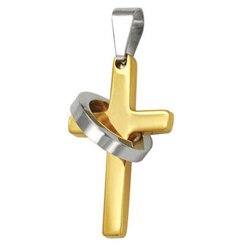 STAINLESS STEEL PENDANT In Cross shape with S/S Ring In IPG 2 tones
