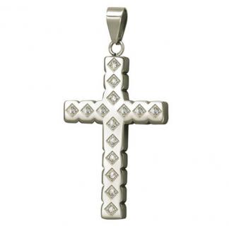 STAINLESS STEEL PENDANT In cross shape with 15pcs CZ All in Stainless Steel
