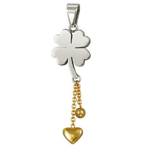 STAINLESS STEEL PENDANT In Clover shape with heart and beads charms In IPG two tone