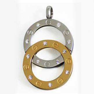 STAINLESS STEEL PENDANT In 2 Circle shape with cz with screw pattern In IPG Two Tone