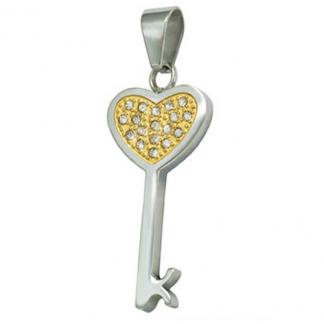 STAINLESS STEEL PENDANT In key shape with CZ In IPG two tone