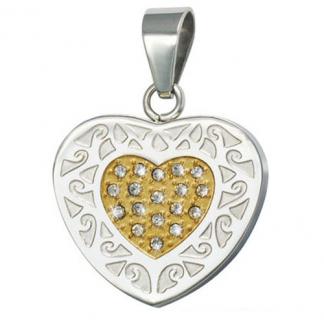 STAINLESS STEEL PENDANT In heart shape with CZ In IPG two tone